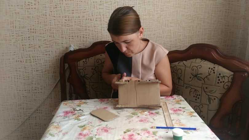 - На основе готового шаблона из картона вырезаются необходимые элементы, их боковые грани склеиваются.