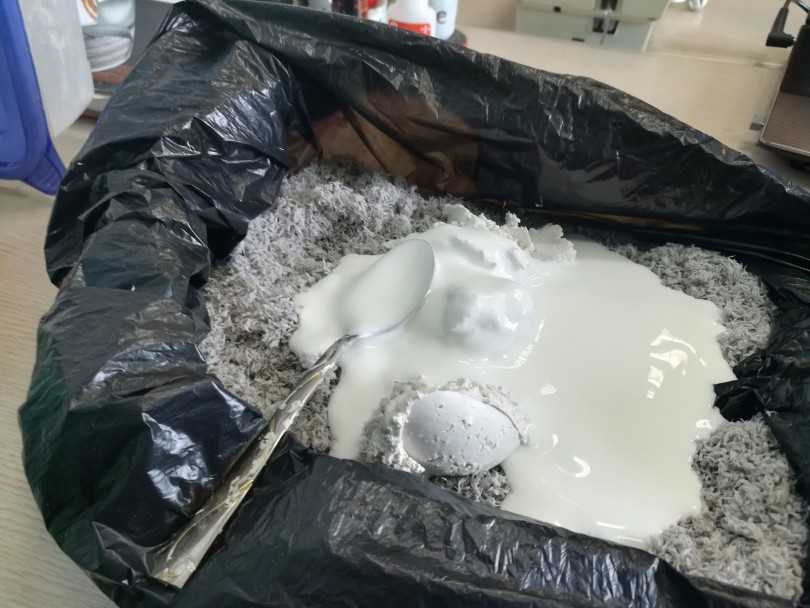 На скрученную из проволоки модель послойно наклеиваем небольшие бумажные кусочки, смоченные в клее. При отсутствии клея ПВА применяется силикатный, можно использовать приготовленный по-старинке крахмальный клейстер.