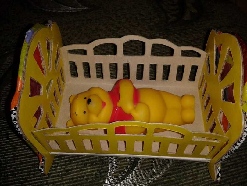 Картон очень распространён в быту и поэтому наиболее предпочтителен, к тому же безопасен и несложен в процессе применения. Занятия с ним доступны даже детям, но обязательно под присмотром. Кровать из картона делается следующим образом.