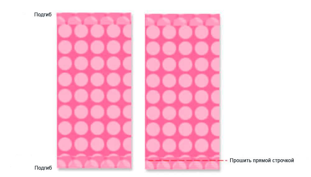 Подшиваем короткие стороны прямоугольников (подворачиваем на изнаночную сторону и прострачиваем прямой строчкой).