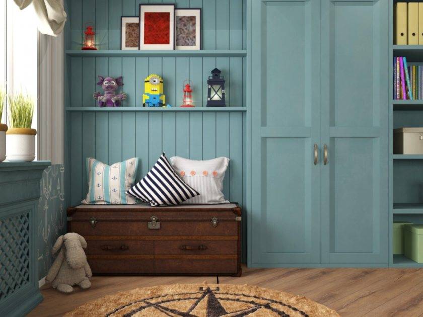 В детской идеально применить удобную кровать, напоминающую о спальном месте в каютах на корабле. Рядом можно поставить небольшой столик или сундук, чтобы малыш чувствовал себя настоящим героем приключений.