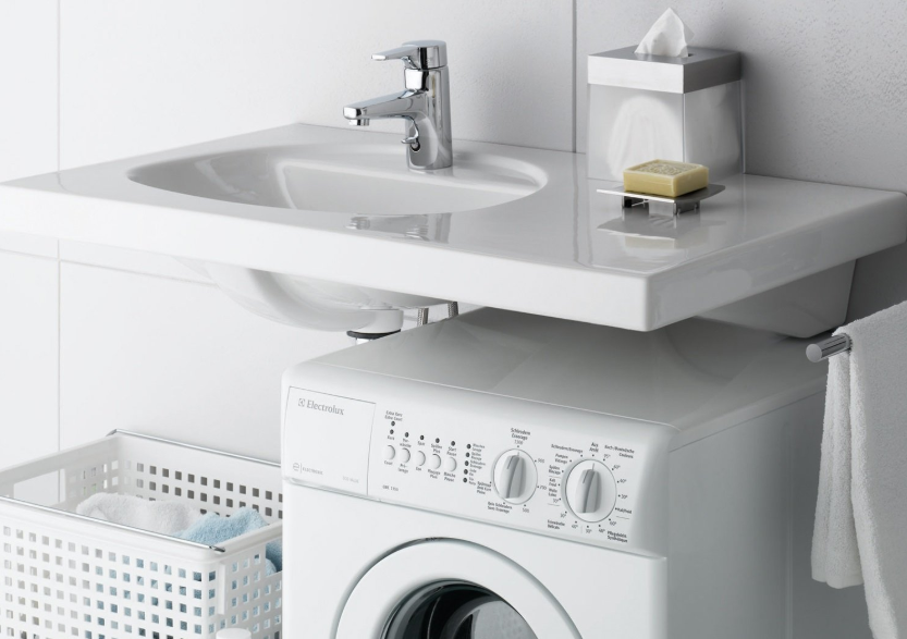 К изделиям Electrolux и Zanussi подойдут лишь раковины с узким сифоном. За счет этого между обоими компонентами возникает зазор до 10 см. Поэтому рекомендуется все же устанавливать компактные, а при их отсутствии – узкие стиральные машины.