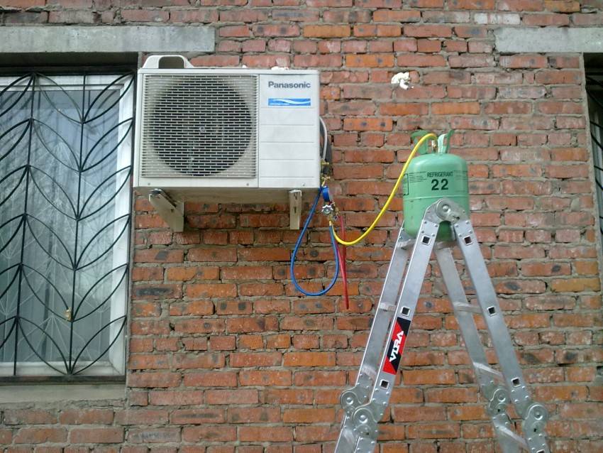 Почему в таком порядке? Потому что при заполнении фреоном система находится под давлением, которое быстро запирает заправочный порт при отсоединении насоса. Вот и все, установка кондиционера своими руками завершена, можно включать.