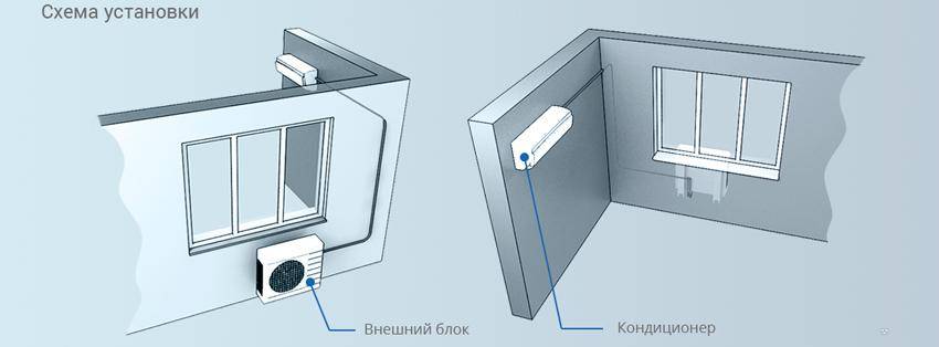 Внешний блок должен быть расположен на заранее определенных и установленных креплениях, расположенных снаружи вашего помещения. В основном принцип простой: блок размещают недалеко от окна — сбоку (лучше всего справа), либо снизу, что делает работу и обслуживание кондиционера максимально удобным.