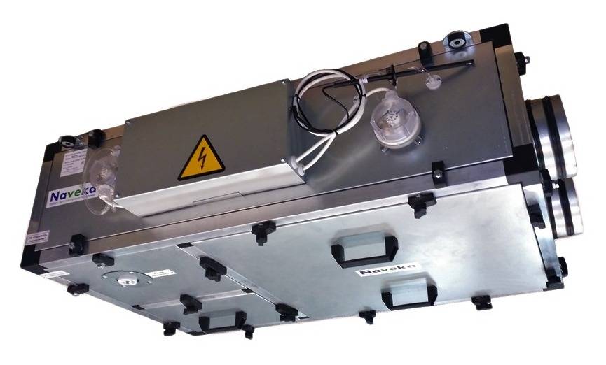 Хорошо зарекомендовали себя установки такого типа от производителя т.м. Naveka — Node1. Они имеют алюминиевый рекуператор, дренажную систему для слива конденсата и систему защиты от обмерзания рекуператора. А так-же самые тихие в своём классе вентиляторы, электрический или водяной нагреватель, встроенную автоматику и пульт дистанционного управления с настройкой режимов и расписания работы.