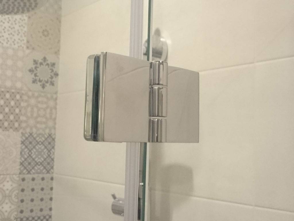 Во-первых, петли. Это основной элемент для распашных и маятниковых моделей. При их выборе надо смотреть на такой параметр, как допустимая нагрузка. Если стеклянная дверца душевой будет иметь вес больше предусмотренного в характеристиках, то это чревато проседанием петель и перекосом панелей, что заметно испортит дизайн душевой кабины и может привести к ее полному разрушению.