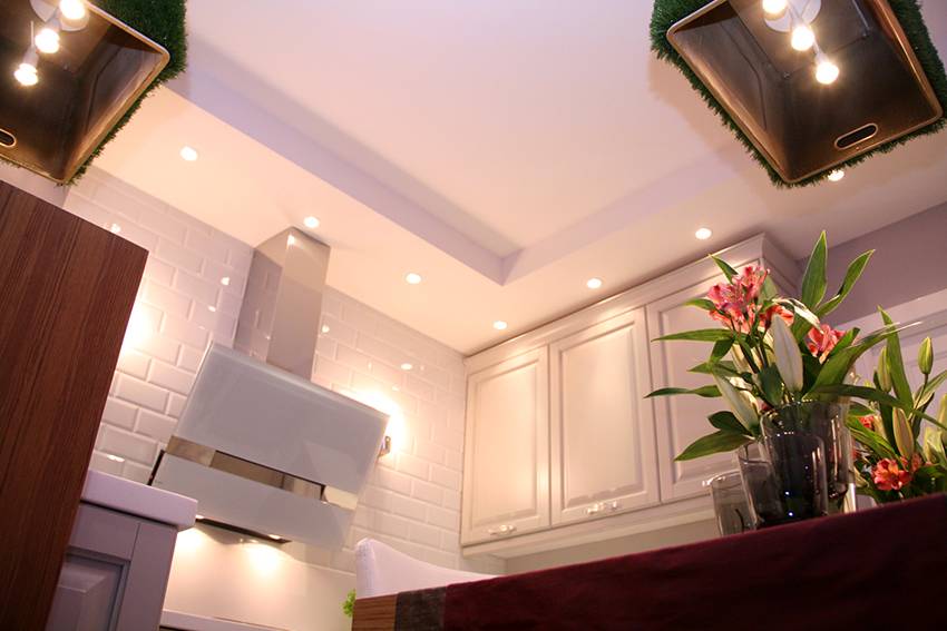 Варианты освещения кухонного потолка