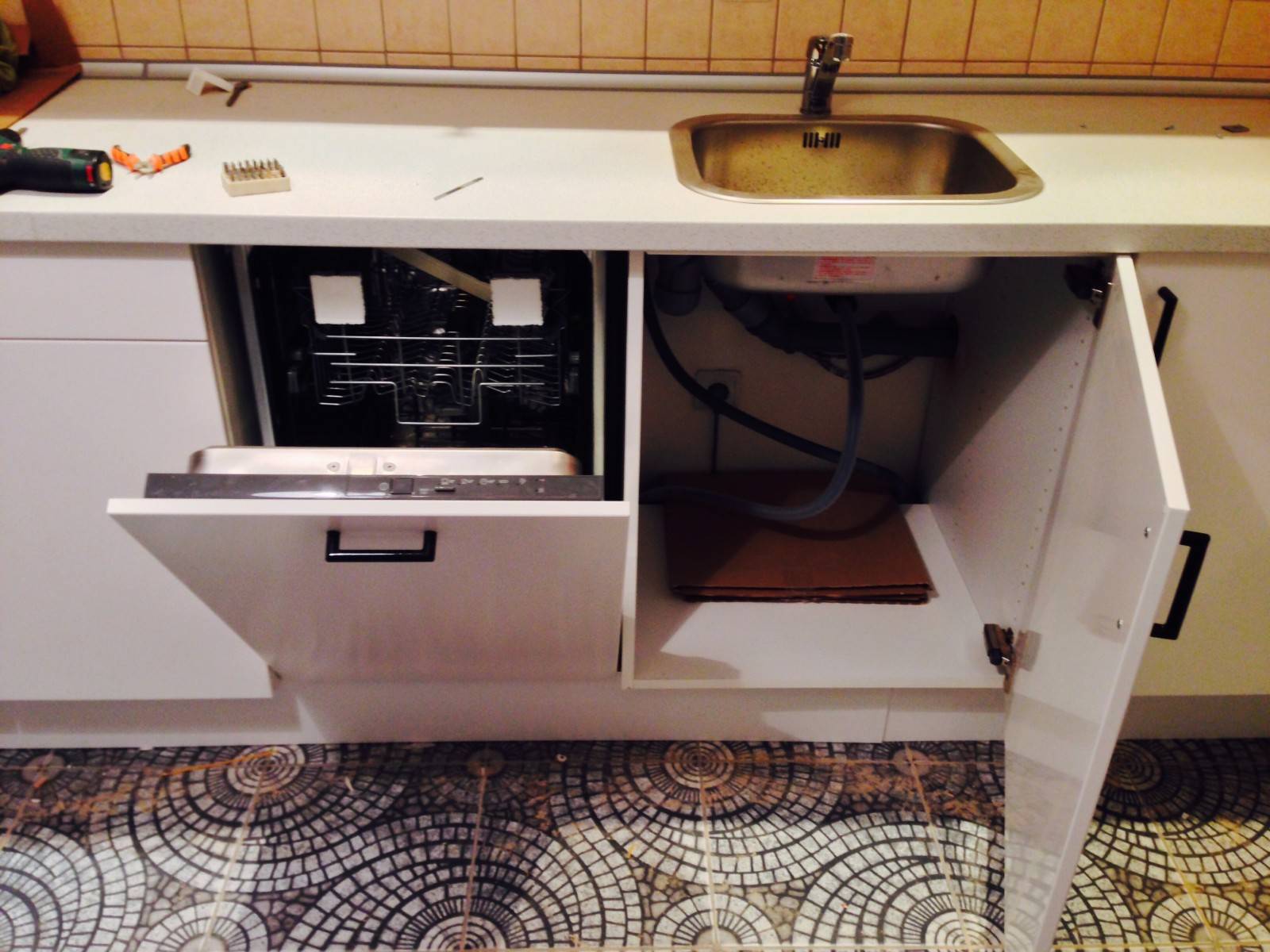 Монтаж будет простым и удобным, если в проекте кухонной мебели предусмотрена ниша для посудомоечной машины. Однако, так происходит не всегда. Если вы давно покупали кухонный гарнитур и не желаете его полностью менять, освободите один из шкафов.
