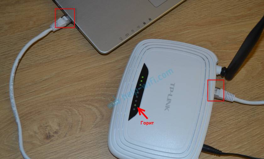 Один конец кабеля подключаем к компьютеру, а другой в WAN-порт на роутере.