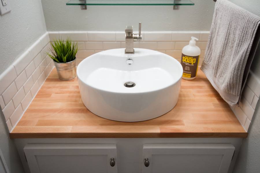 Если раковина частично углубляется в столешницу, то отверстие под нее должно полностью совпадать по форме и размерам с помещаемой внутрь чашей. Самый простой вариант – умывальник, устанавливаемый на стол сверху. Для него отверстие необходимо прорезать небольшое и круглое с диаметром всего в несколько сантиметров под сливную трубу.