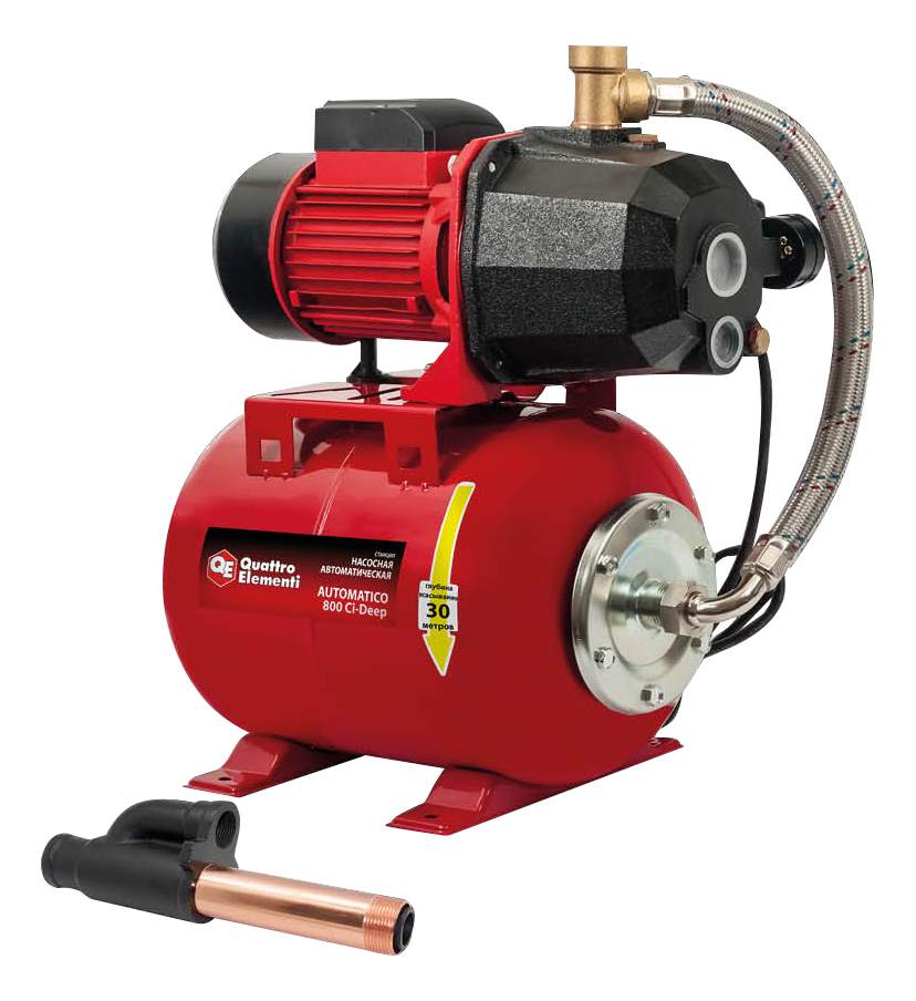Недорогой бытовой насос датской разработки помещен в надежный корпус из нержавеющей стали, внутренние детали выполнены из чугуна. Прибор оснащен небольшим мотором средней мощности (900 Вт), который работает практически бесшумно. Внутри установлен датчик давления, который срабатывает без перебоев