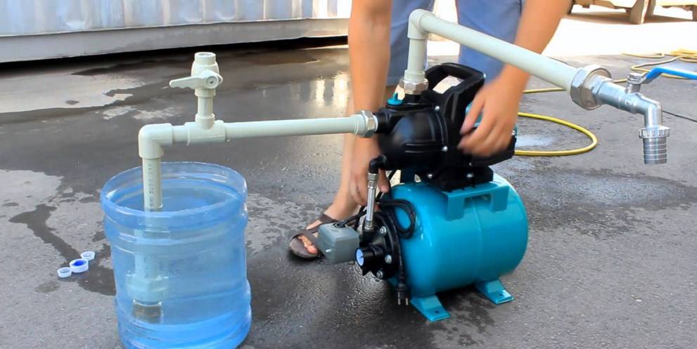 Для проверки работы выполняется включение конструкции в электросеть. При этом насос запускается и начинает закачку жидкости. Конструкция должна отключиться самостоятельно при достижении определенного уровня давления.