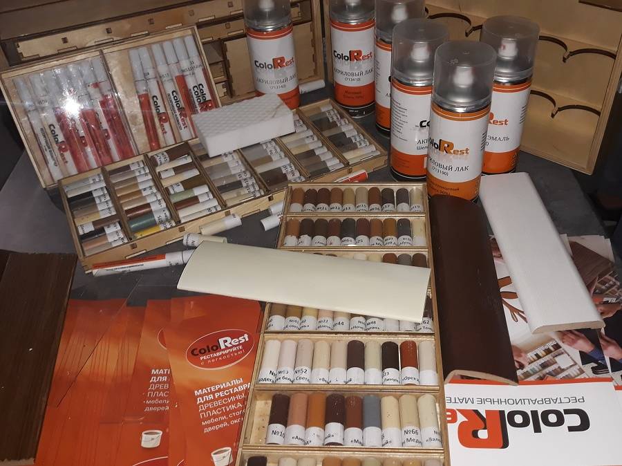 - Силиконовый герметик или воск, восковые реставрационные мелки, штрихи для маскировки дефектов и царапин. Этот набор расходников нельзя отнести к инструменту для сборки мебели своими своими руками, но в процессе он обязательно понадобится, для обработки срезов, нечаянных дефектов и т.д.