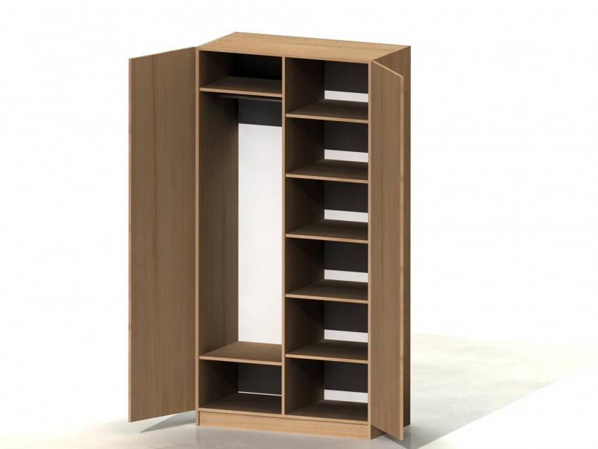 - ДСП. Самый распространенный материал. Отличается низкой стоимостью и прочностью, позволяет получить разные виды конструкции. Под него изготавливается практически вся мебельная фурнитура, поэтому шкаф, сделанный своими руками из ДСП, представляет собой наиболее простой и привлекательный вариант.