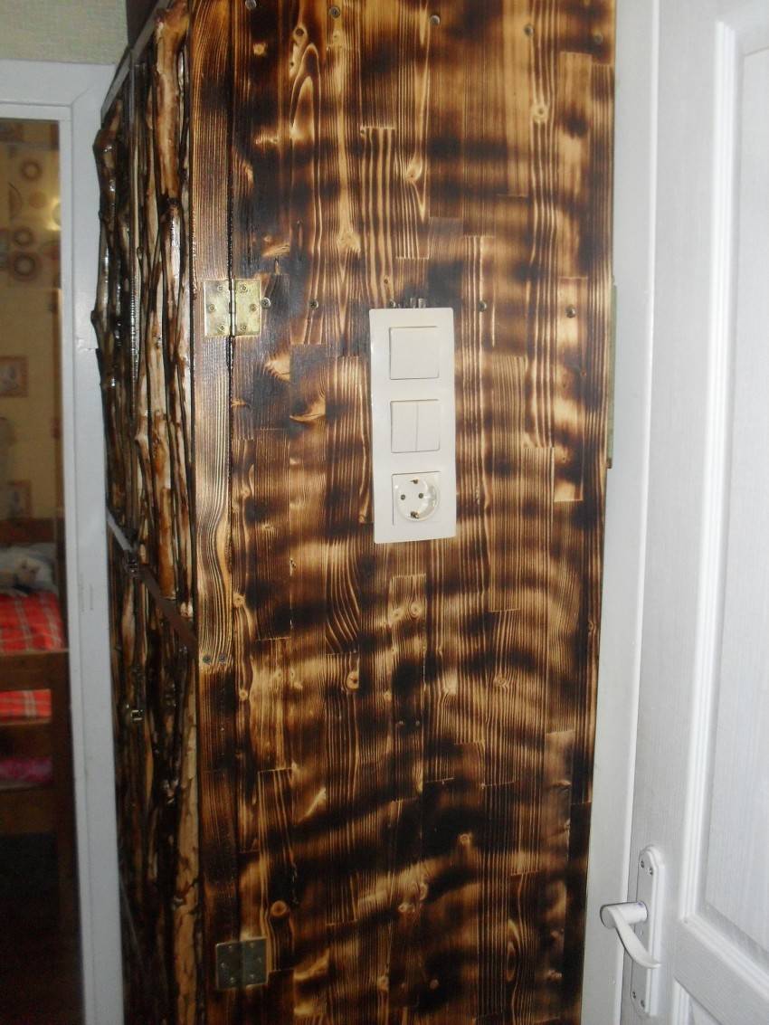 Многие в качестве сырья для деревянного изделия применяют готовую обшивку. Например, таким образом можно своими руками сделать шкаф из вагонки. Материал заранее обработан и позволяет получить оригинальное заполнение плоскостей. Недостаток — большие объемы шлифовки и отделки, создающие много пыли и сильный запах лакокрасочных материалов. Могут быть использованы и другие варианты, которые придутся по вкусу мастеру. Необходимо учесть, что изготовление мебели из подручных материалов потребует больших усилий при обработке.