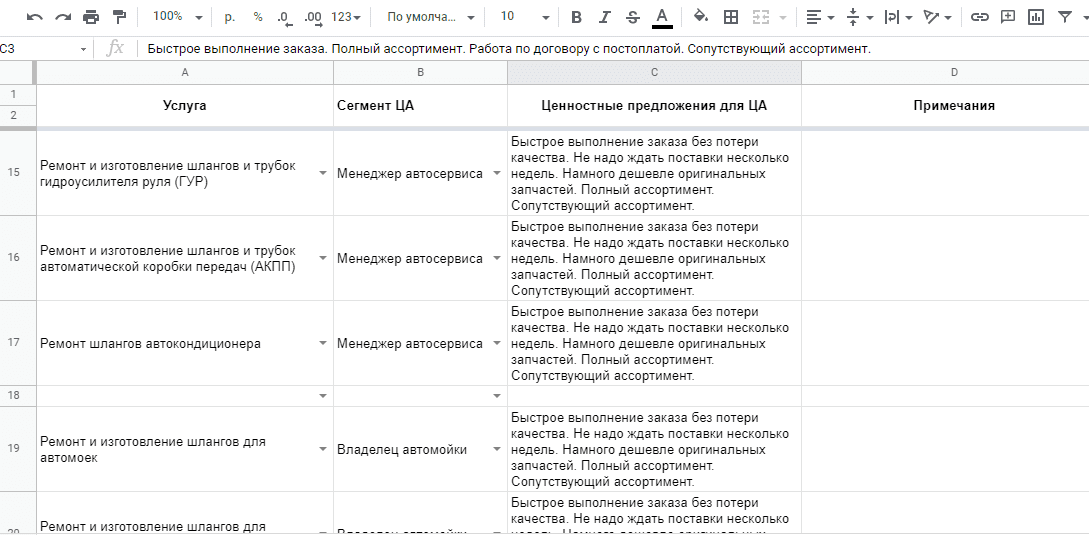 Для тестового анализа спроса и его стоимости мы выбрали одну услугу – ремонт и изготовление ГУР. Сформировали 3 активные воронки на 3 сегмента ЦА: