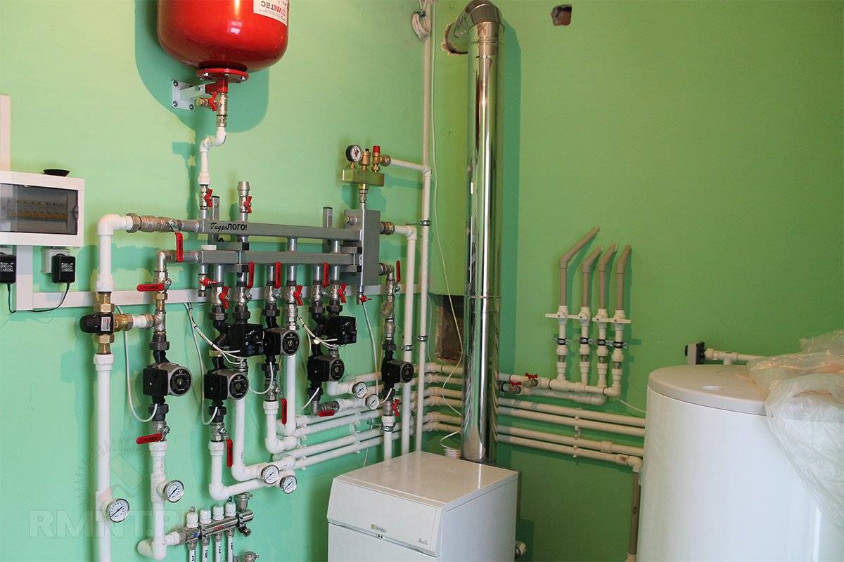 Небольшие дома обогревает котел, в который встроен насос. Вторичные контуры присоединяют к котлу через гидрострелку. Независимые контуры жилых домов с большой площадью (от 150 м2) подключают через гребенку, гидроразделитель будет громоздким.