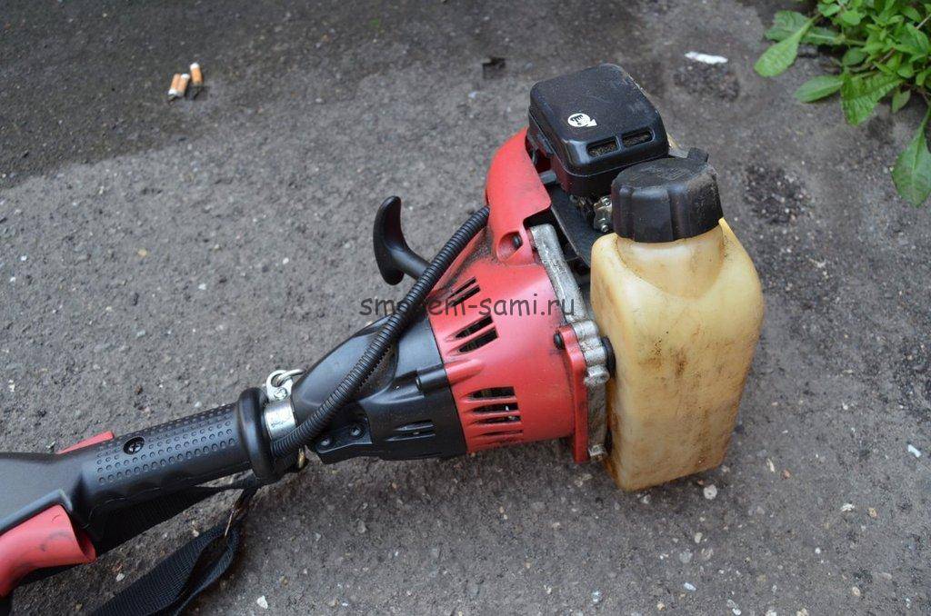 Топливная смесь должна быть приготовлена с точным соблюдением пропорций бензина и масла. При этом нельзя использовать другую марку горючего. Для исключения попадания грязи, бензин должен отстояться в стеклянной или металлической посуде 2 суток. Нельзя использовать для хранения горючего пластиковую посуду. Масло точно отмеривать медицинским шприцом без иглы. Пользоваться только свежеприготовленной смесью, не оставляя не выработанное горючее в бачке. Если двигатель капризничает, бензокоса глохнет, при нажатии на газ, возможно, виновато горючее.