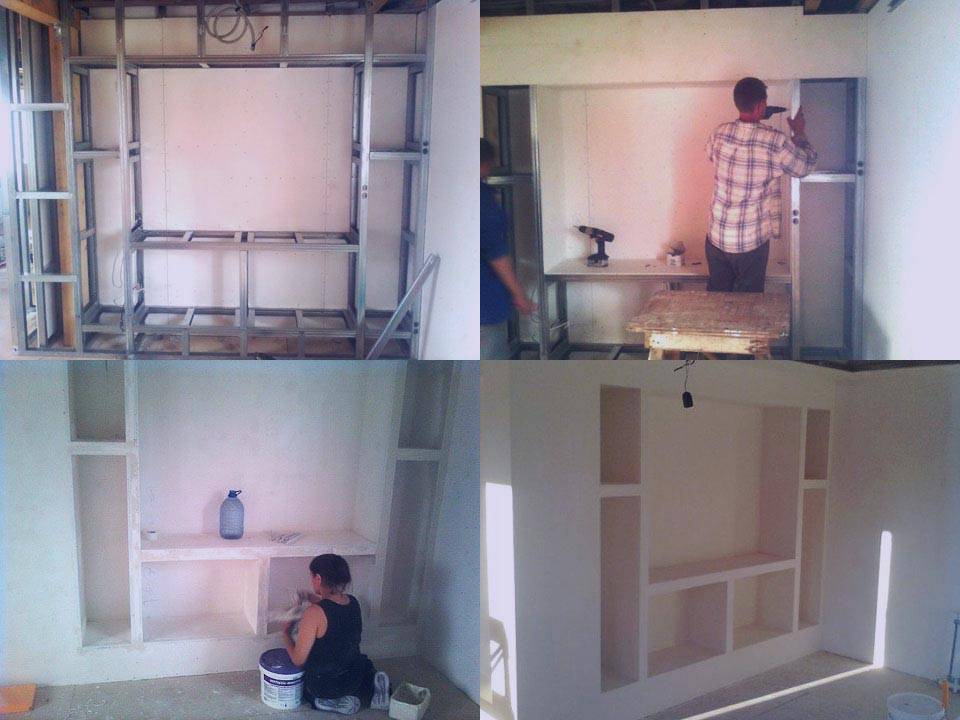 Поэтапный процесс изготовления стенки под телевизор из гипсокартона
