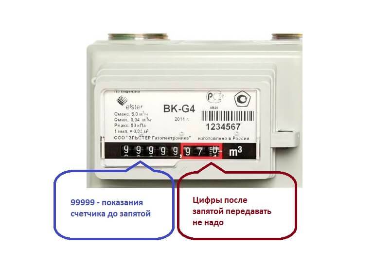 Потребитель ежемесячно до 10-го числа должен фиксировать показатели счетчика. Затем проводится расчет израсходованного газа, сравнивая текущие данные с объемом потребления прошлого месяца. Обладатель прибора учета оплачивает то количества топлива, которое использовал.