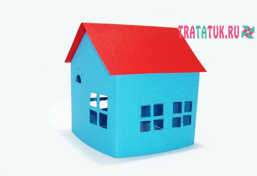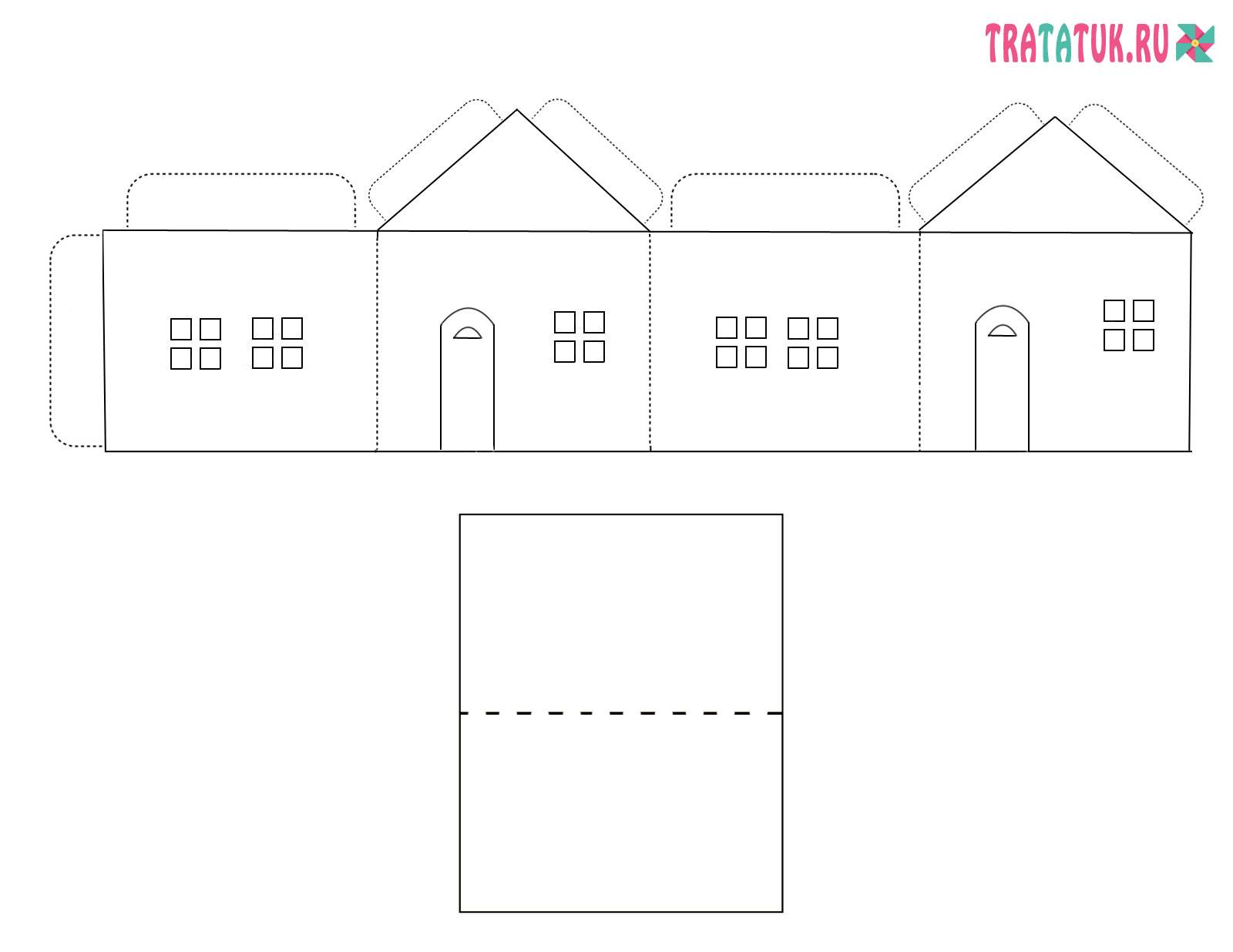 Распечатайте шаблон домика и вырежьте заготовку из цветного картона.