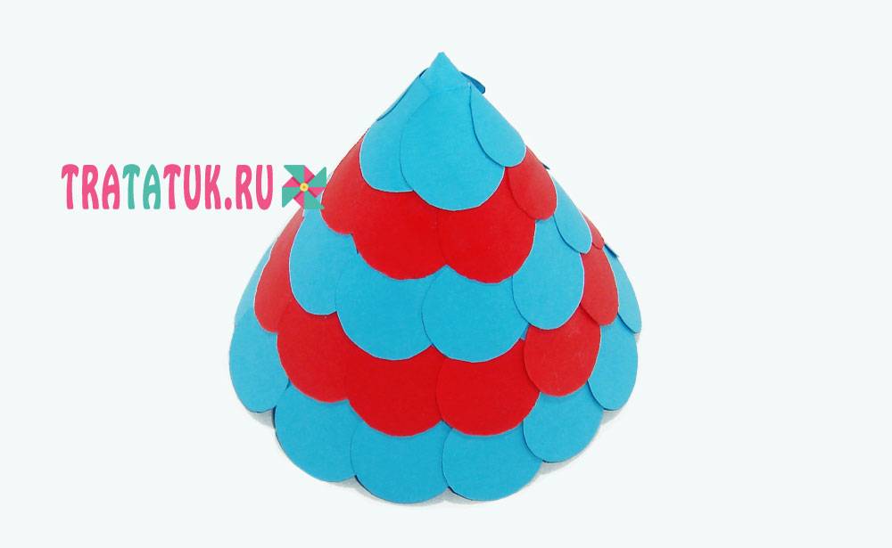 Крышу можно украсить черепицей. Для этого понадобятся кружочки из цветного картона. Их размер не столько существенен, но нужно помнить, что с маленькими кружочками работы немного больше.