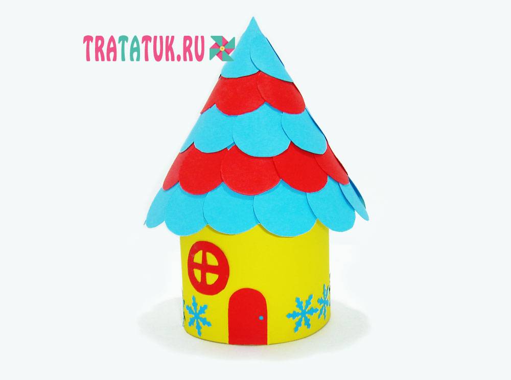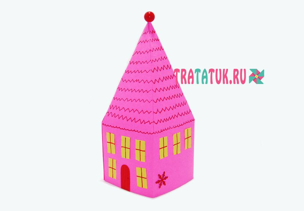 * Можно украсить домик по вкусу. Используйте фломастеры, блестки с клеем, вату (снег) и т.д.
