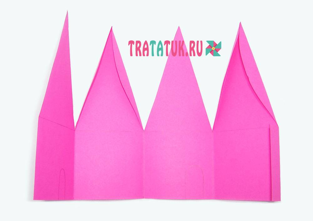 Согните их в одну сторону. То есть нужны сгибы после каждого квадратика, сбоку и в области крыши. На крыше нужно сделать это тщательно и аккуратно, чтобы при сгибе образовались ровные треугольники. Для этого можно воспользоваться линейкой, транспортиром, пластиковой карточкой.