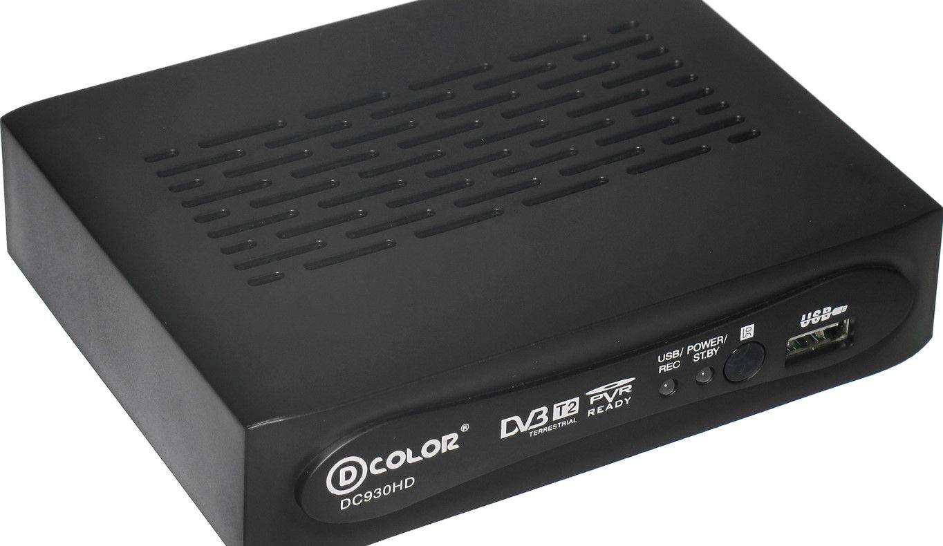 Цифровой ТВ-ресивер стандарта DVB-T2. Это приёмник для цифрового телевидения, без которого старые ТВ не будут ловить сигнал эфирных телеканалов.