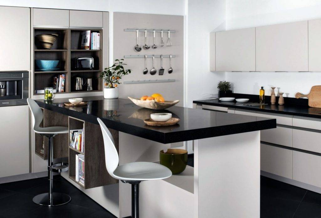Обратите внимание! Барный стол в кухнях-столовых устанавливают дополнительно к обеденному столику