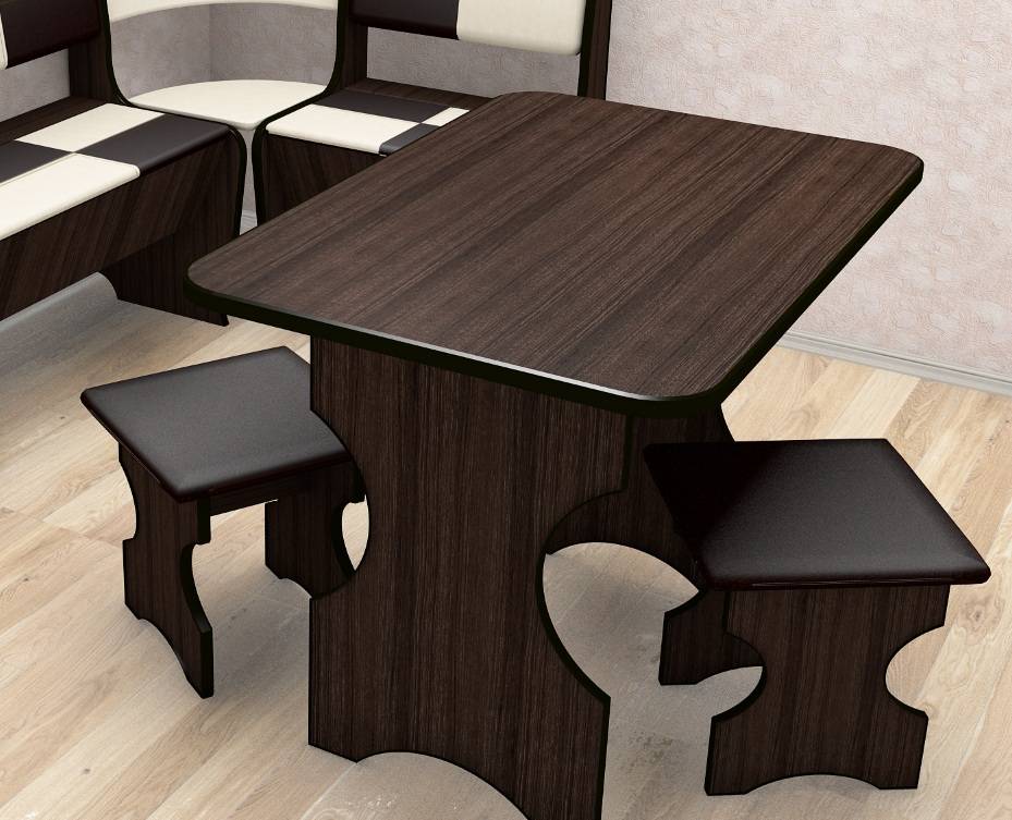 Это классический вид мебели для столовых, который можно встретить на кухнях многих друзей и знакомых. Данная модель оправдана разнообразием материалов, хорошей прочностью и удобством сидения за таким обеденным столом.Состав кухонной мебели играет такую же роль, как и сам дизайн. Именно материал обеденного стола определяет его внешний вид, долговечность и условия эксплуатации.