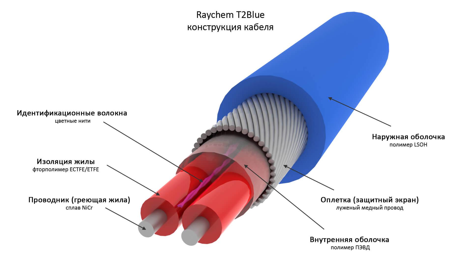 Саморегулирующийся кабель FreezStop изготавливают из двух параллельных медных проводников. Расположенный между ними промежуток заполняют матрицей (полупроводящим составом). Она изменяет свое сопротивление при повышении или понижении температуры объекта.