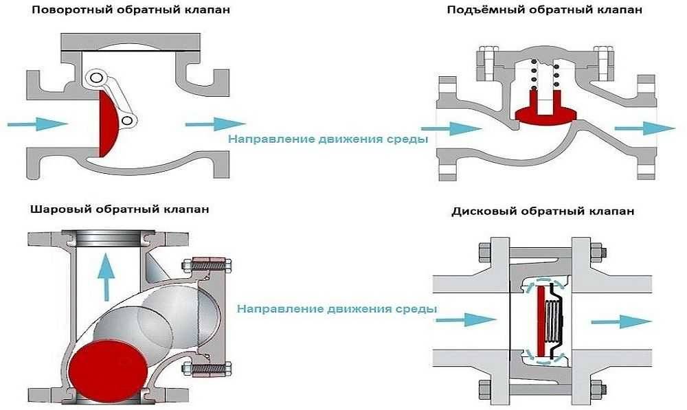 Существует довольно много видов обратных клапанов. Для применения в быту используются: