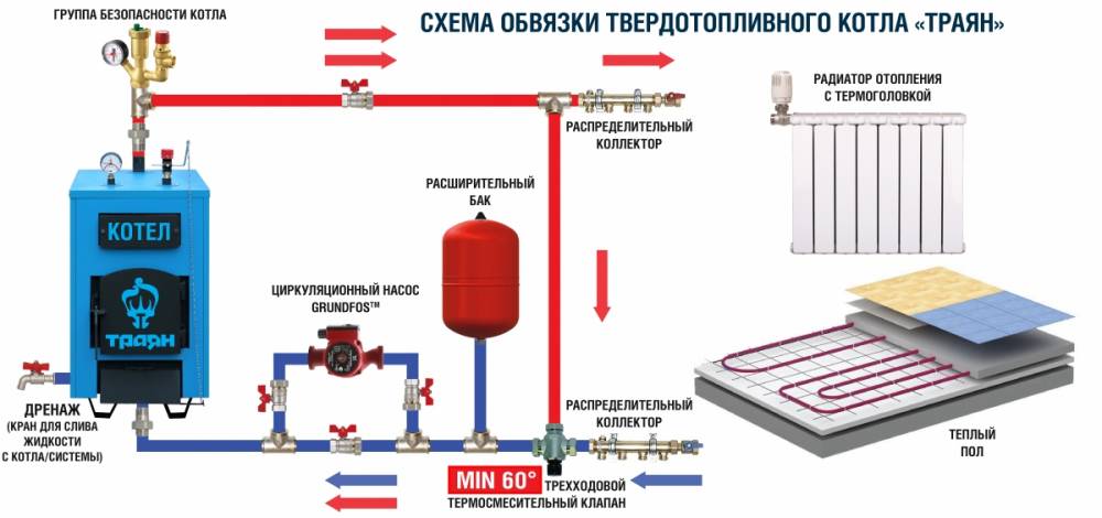 Подключение котла на твердом топливе в гравитационную систему отопления
