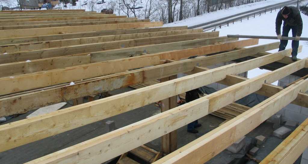 - Если задействованы балки свыше 8 м, то рекомендуется выполнить их сращивание. На стыках потребуется усиление монтажными пластинами либо кусками досок.