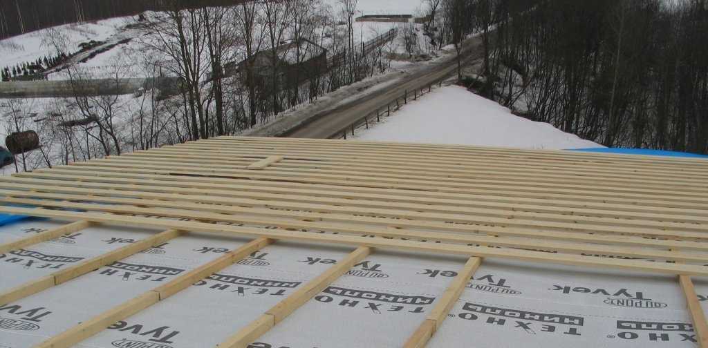 Укладываем гидроизоляционную ветрозащитную паропроницаемую мембрану