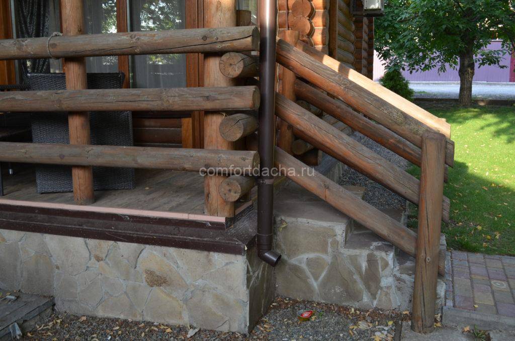 - Дерево. Самый популярный и сложный в уходе вариант для ограждения веранды. Этот материал доступный, недорогой и легко обрабатывается без привлечения услуг профессиональных строителей. Перилам из дерева можно придать любую форму, легко заменить повреждённые элементы и делать демонтаж.