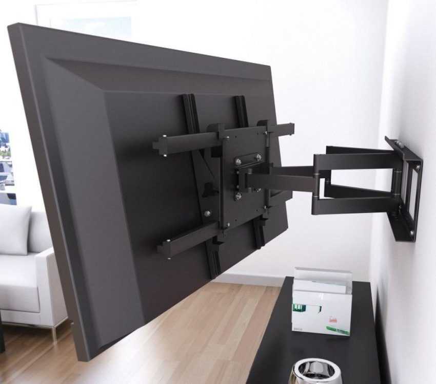Жесткий крепеж представляет собой консольную систему, элементы которой всегда будут находиться в одном и том же строго фиксированном положении. Наклонный и поворотный типы подразумевают под собой подвижную систему, то есть кронштейн. Рассмотрим каждый вид креплений более подробно.