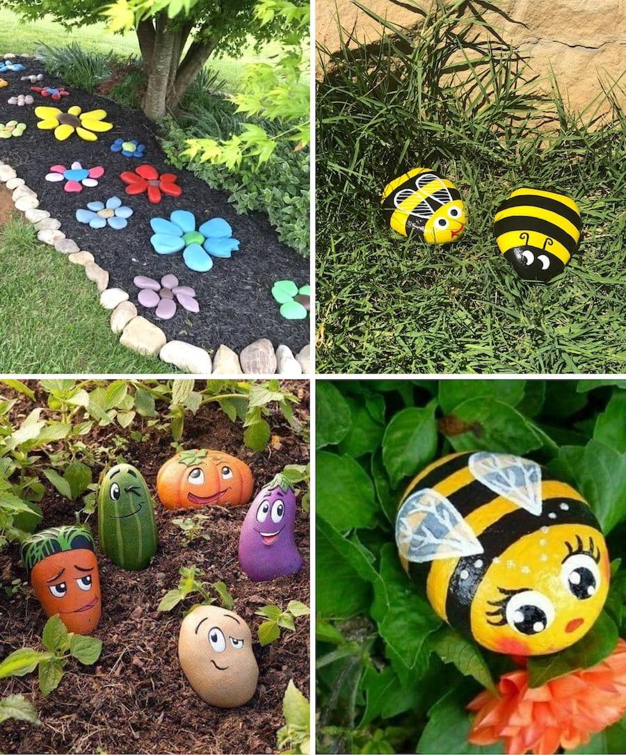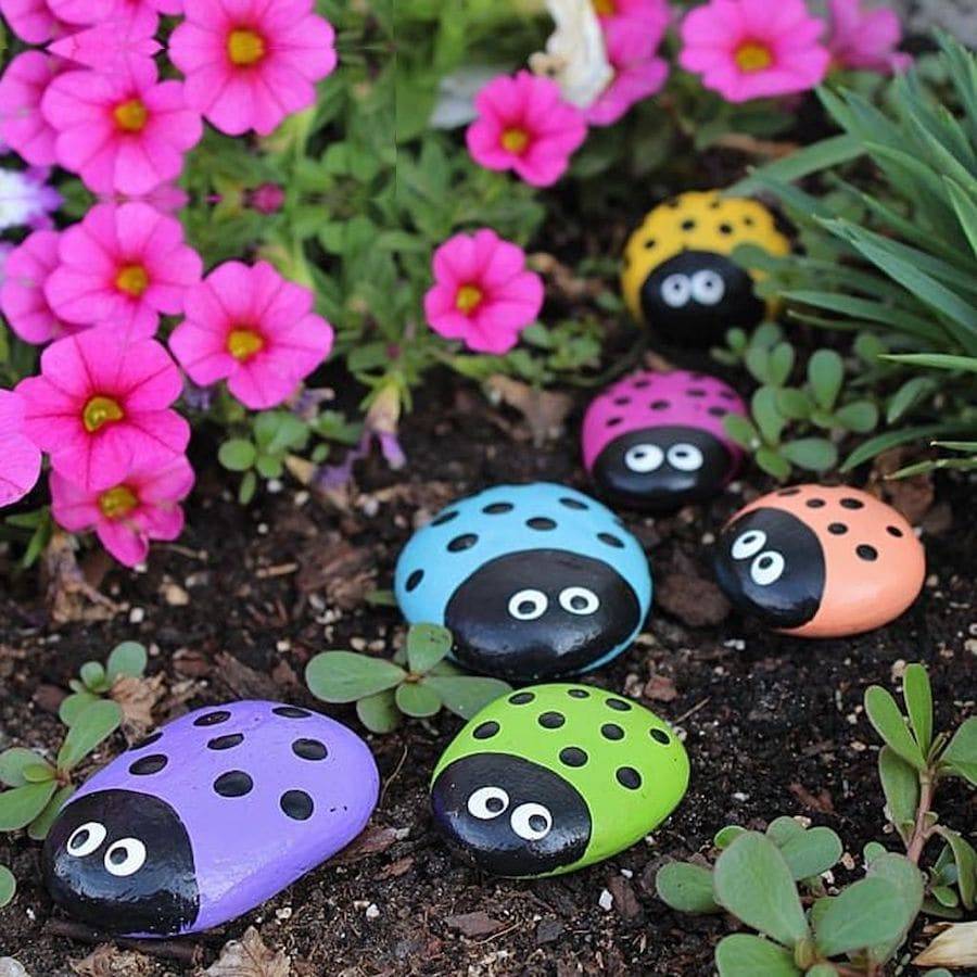 Роспись по камням. При владении навыками художественной росписи можно на достаточно крупных булыжниках создавать удивительной красоты изображения. При желании используют подходящие по тематике трафареты. Для увеличения долговечности рекомендуется нанести защитный слой из прозрачного влагостойкого лака.