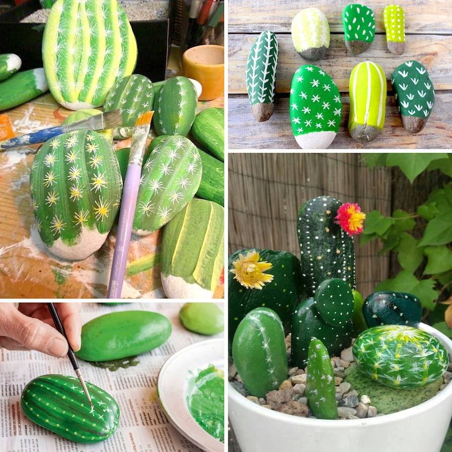Поделки из камней. Подобрав булыжники определенной формы, можно изготовить оригинальные декоративные элементы. Например, красят продолговатые овальные камни в темно-зеленый колер. После высыхания тонкой кисточкой наносят светло-зеленые точки. Готовое изделие защищают лаком. Такие импровизированные кактусы помещают в наполненные щебнем вазоны и украшают беседку, веранду или создают уютный уголок под раскидистым кустом.