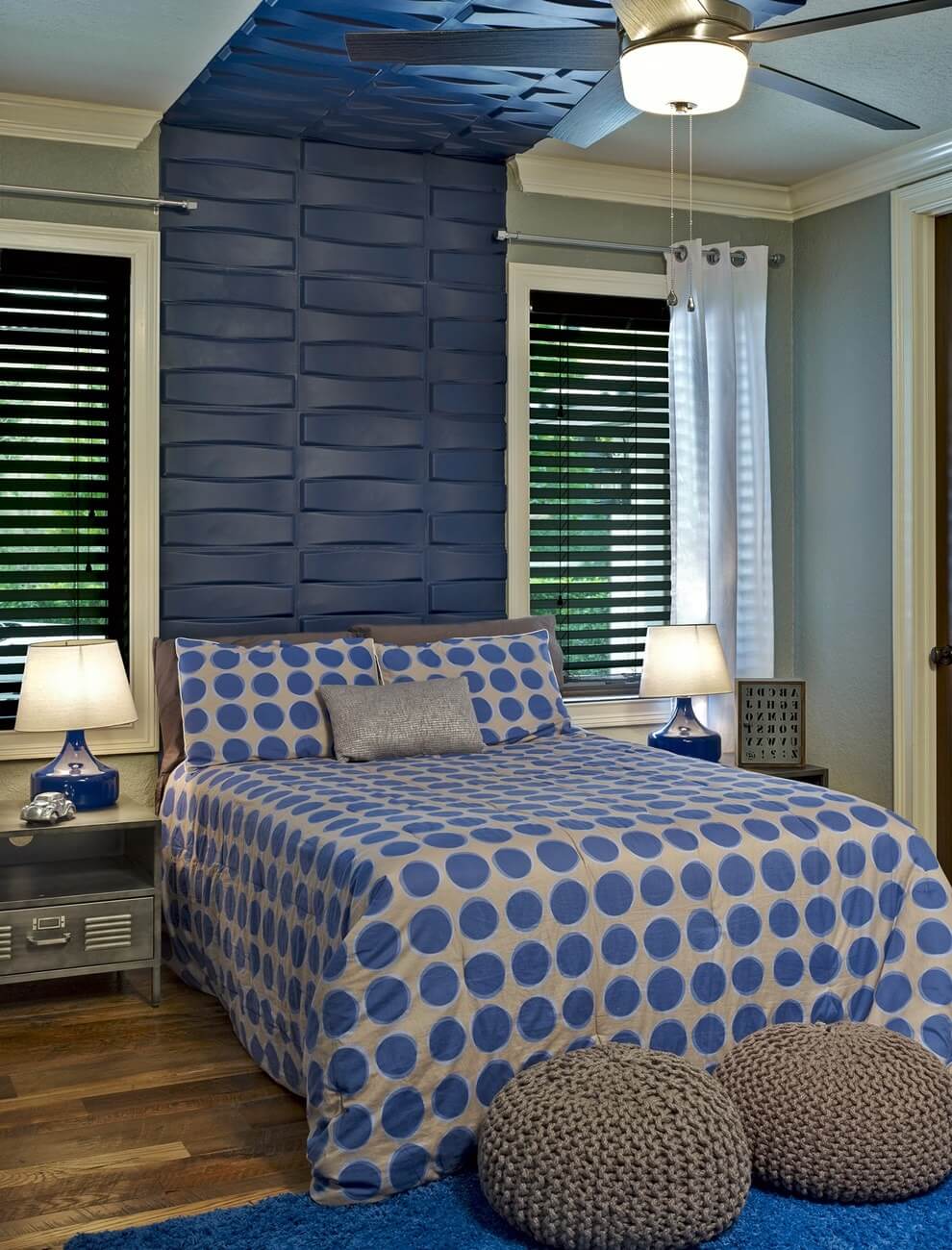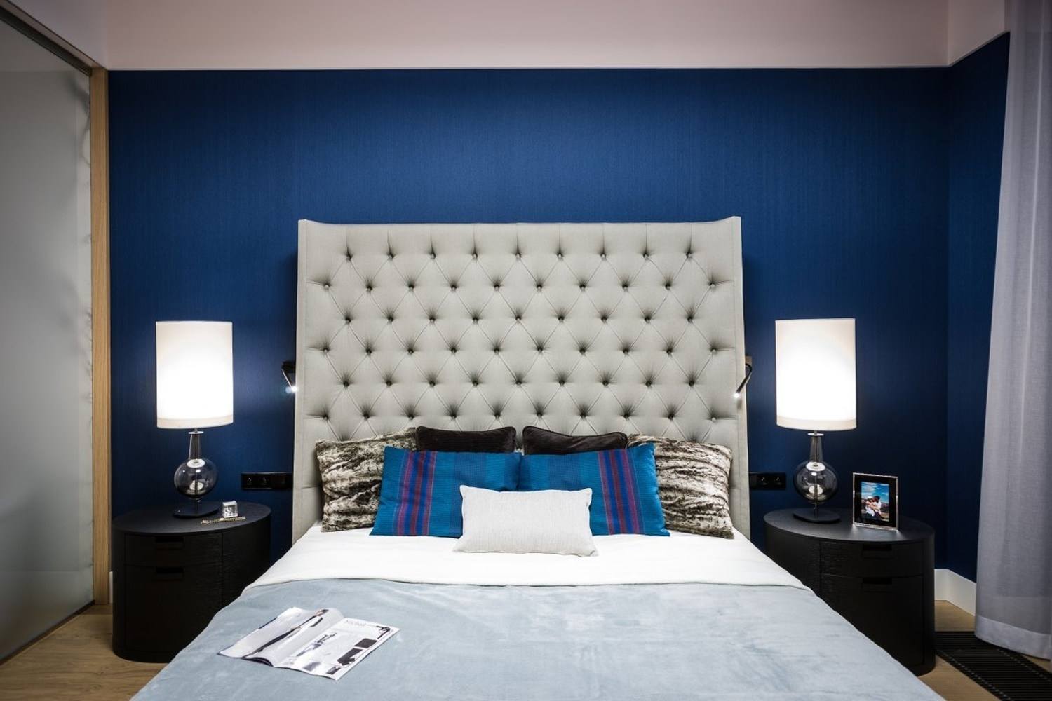 Синий цвет в интерьере спальни выглядит особенно благородно. Он не только подчеркивает эстетическую составляющую, но и часто является акцентом оформления. Кроме того, выбирая такое нетипичное решение, вы сделаете значительный вклад в собственный качественный отдых.