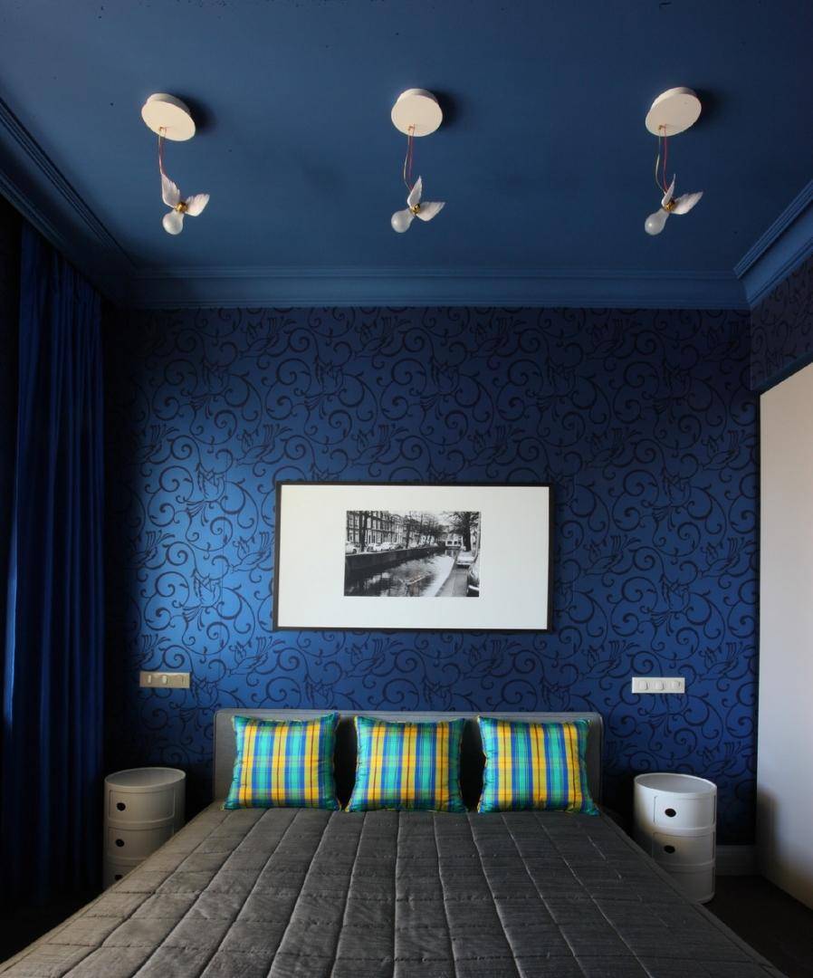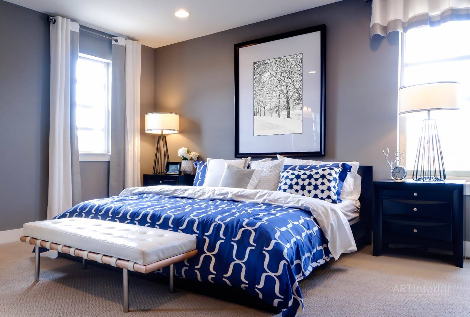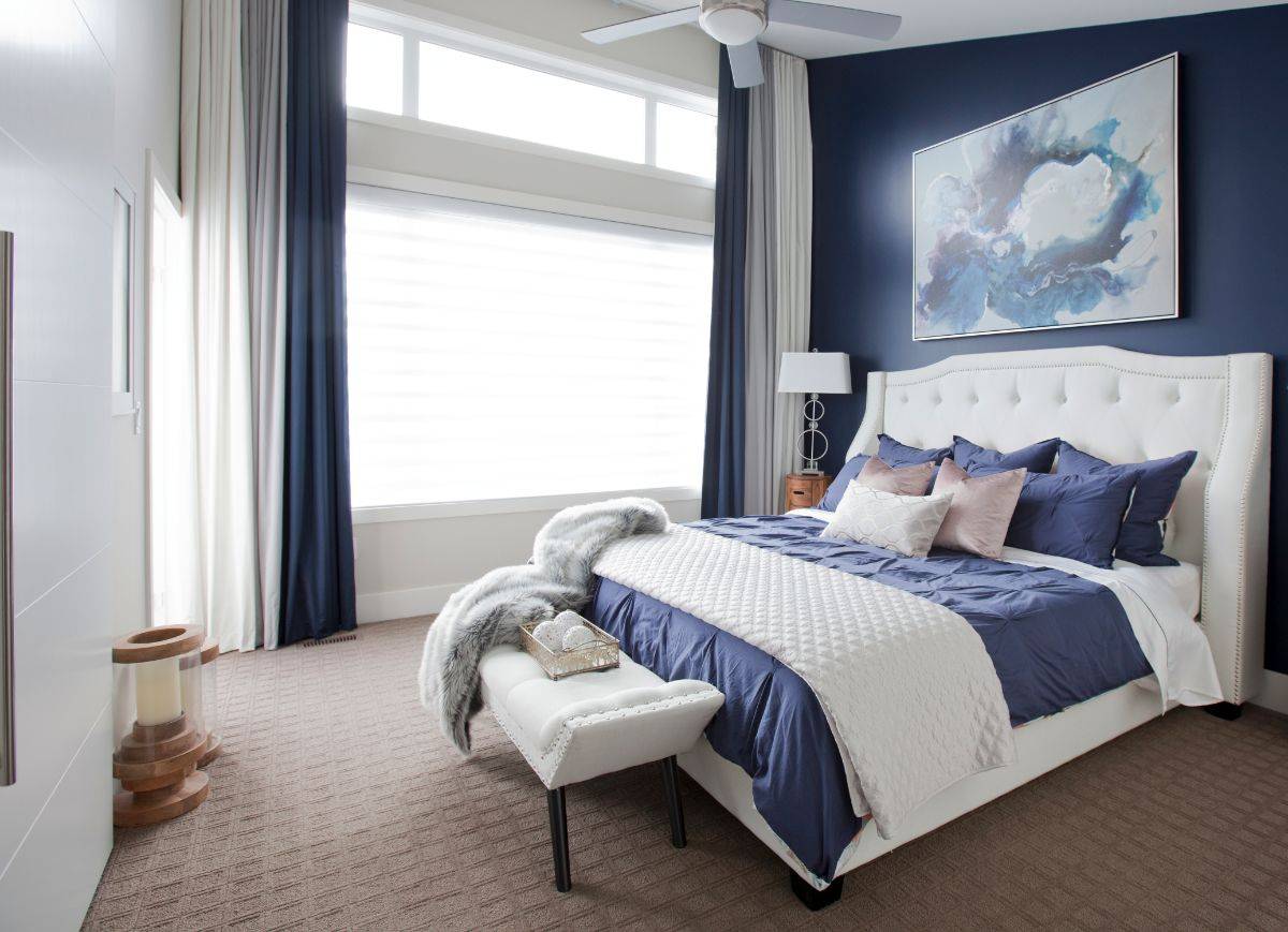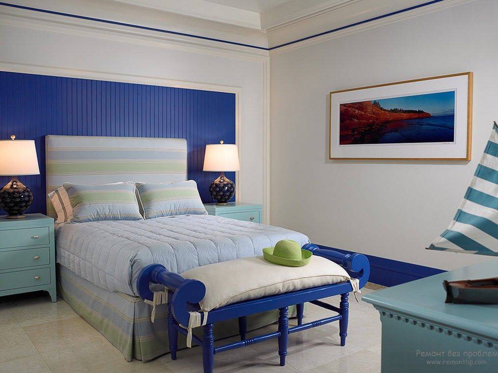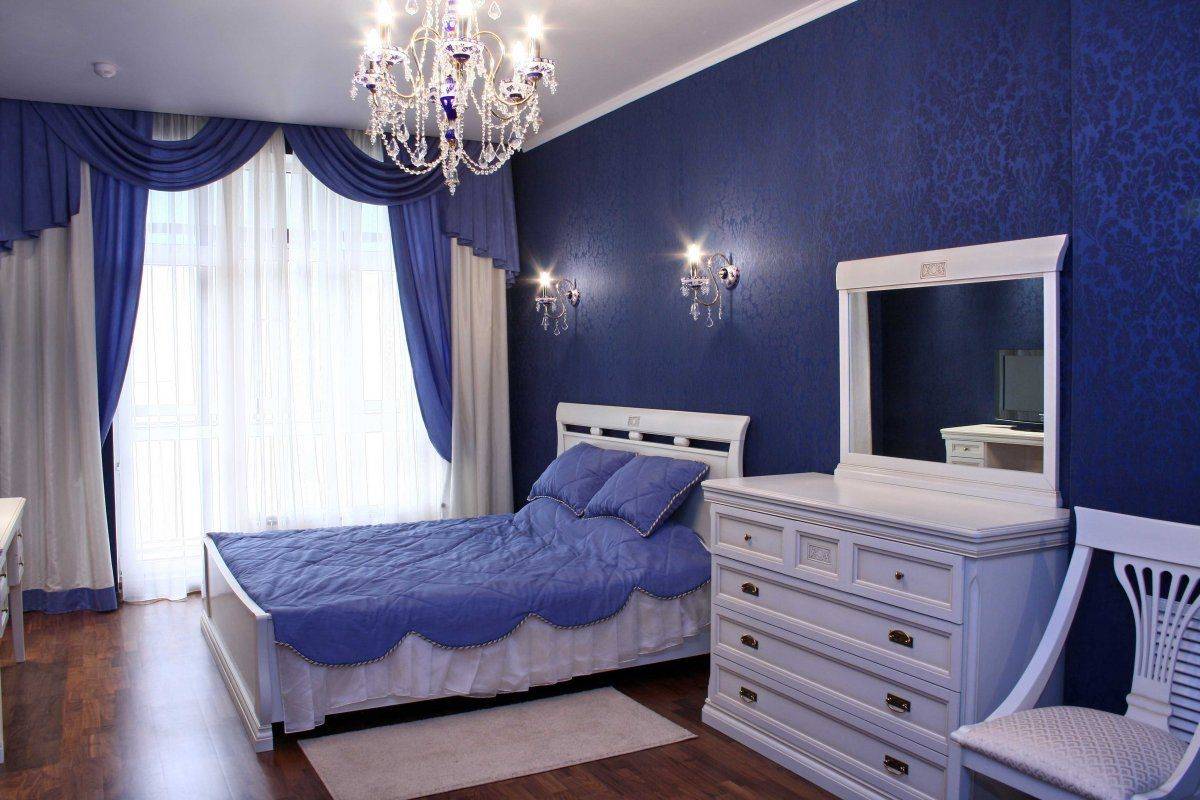 При проектировании маленькой спальни, безусловно, разумнее всего будет обратиться к ярким оттенкам, например, к голубому, который оптически расширяет интерьер. Если у спальни большая площадь, можно выбрать более темный цвет, например, темно-синий.