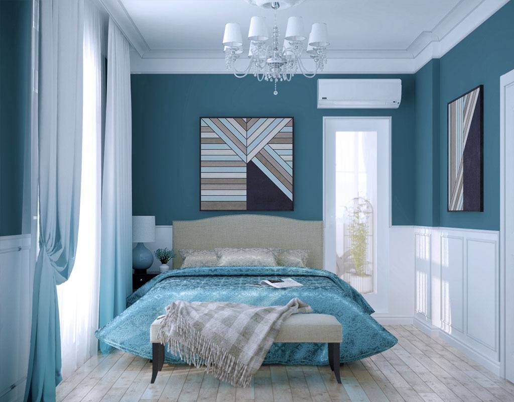 Бирюзовый цвет освежит спальню, а нежный аквамарин наполнит комнату светом и прохладой.