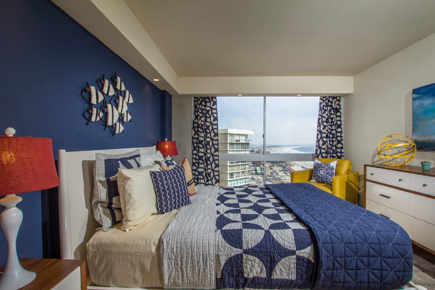 Особенно эффектно выглядит синяя спальня – воплощение одной из самых креативных дизайнерских идей.