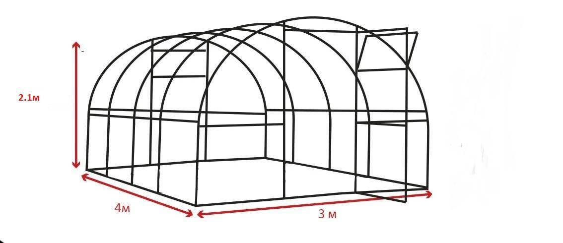 Подготавливая чертеж тепличной конструкции важно учитывать, что труба имеет стандартные размеры от 3 до 12 м. Поэтому нужно узнать этот момент у продавца