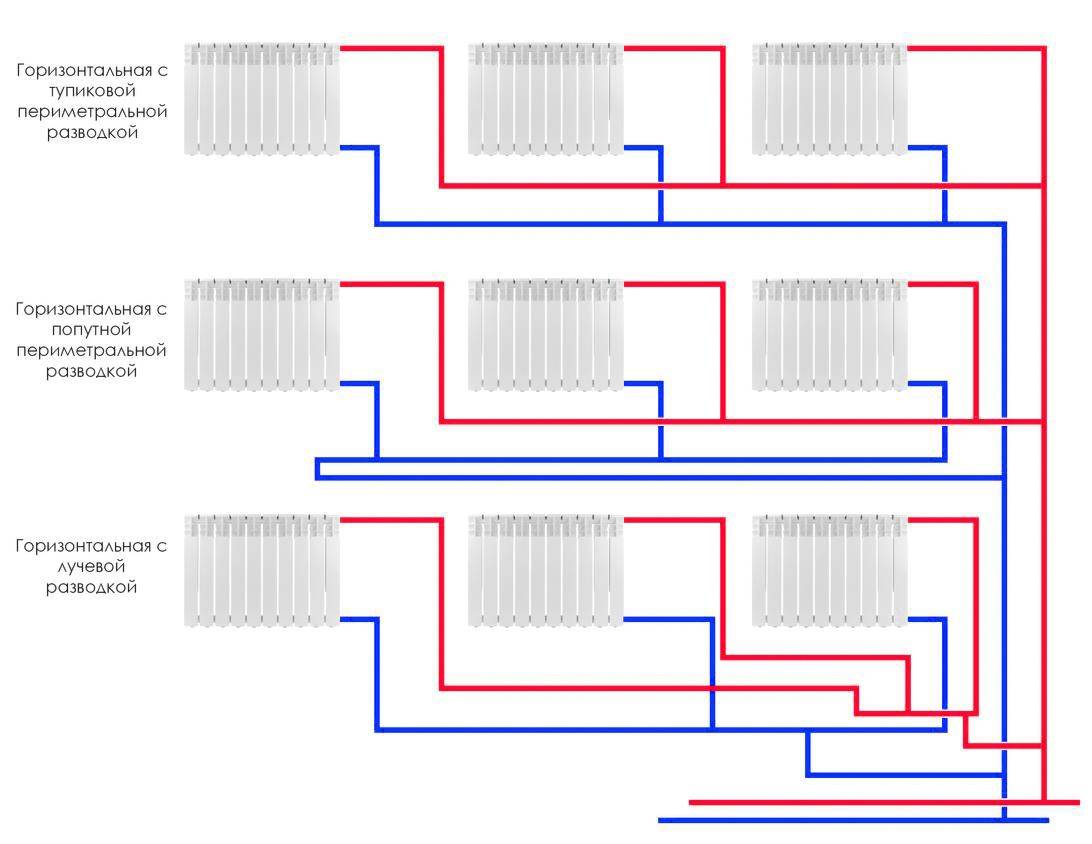 - разводок труб до радиаторов – тупиковые, лучевые, кольцевые.