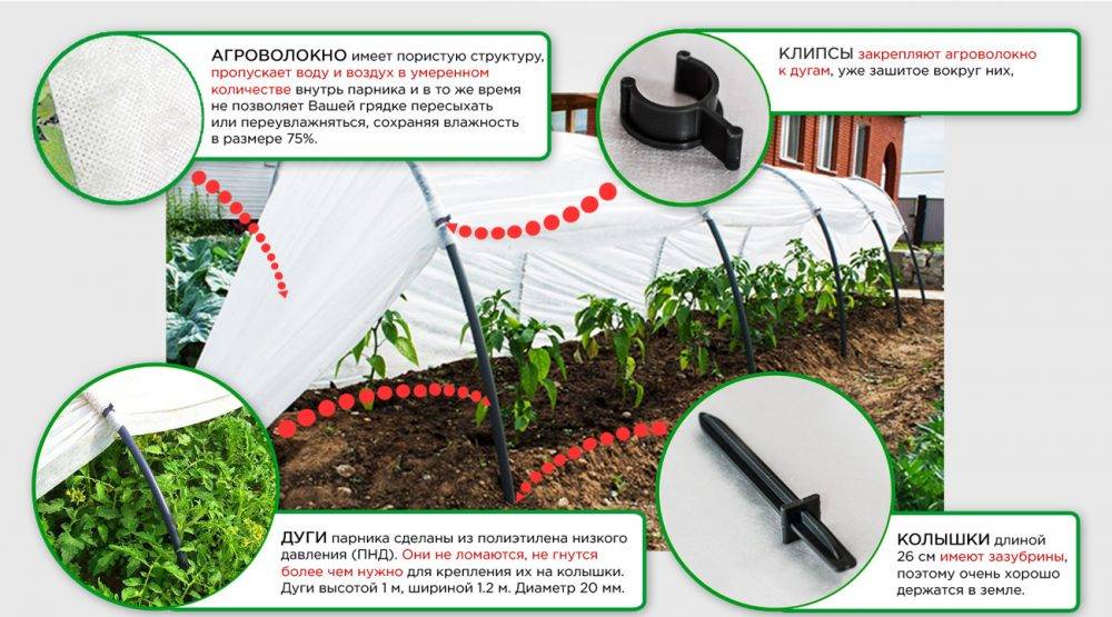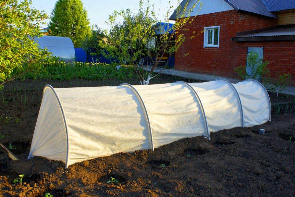 В качестве покрытия используется агроволокно — спанбонд.