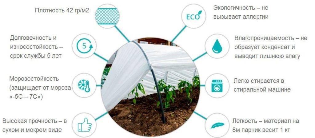 Парник с таким покрытием защитит растения при заморозках до −7 °С. Такой эффект происходит в результате того, что грунт внутри конструкции нагревается за счёт солнечных лучей, а защитное покрытие удерживает тепло, создавая благоприятный микроклимат.