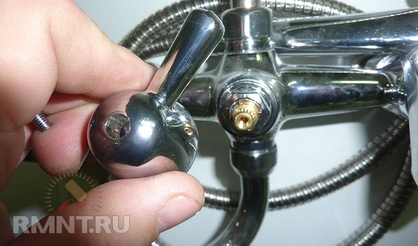 Сначала нужно перекрыть воду в квартире, чтобы избежать затопления или других неприятных неожиданностей во время ремонта. После этого, со смесителя снимается декоративная панель, которая обозначает изменение температурного режима во время движения ручки смесителя. Под панелью расположено резьбовое соединение. При помощи отвертки аккуратно нужно открутить болт и снять верхнюю часть ручки.