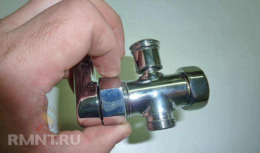- Механический переключатель — представляет собой кнопку, которую необходимо нажимать в ручном режиме при каждой смене направления водного потока. Чтобы уточнить вид переключателя, достаточно перекрыть воду, посмотреть, остается ли кнопка в исходном положении или переключается в позицию «по умолчанию».